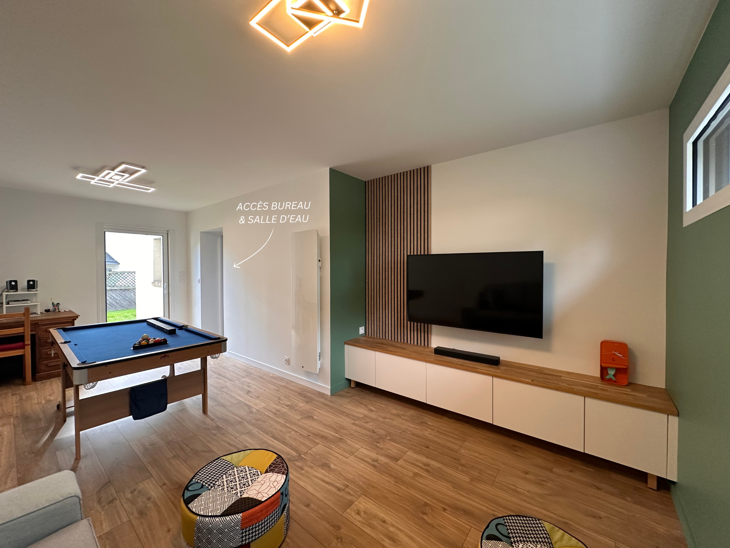 Résultat : un espace lumineux, pratique et modulable, parfaitement intégré à la maison existante, qui valorise le bien et la vie de famille.