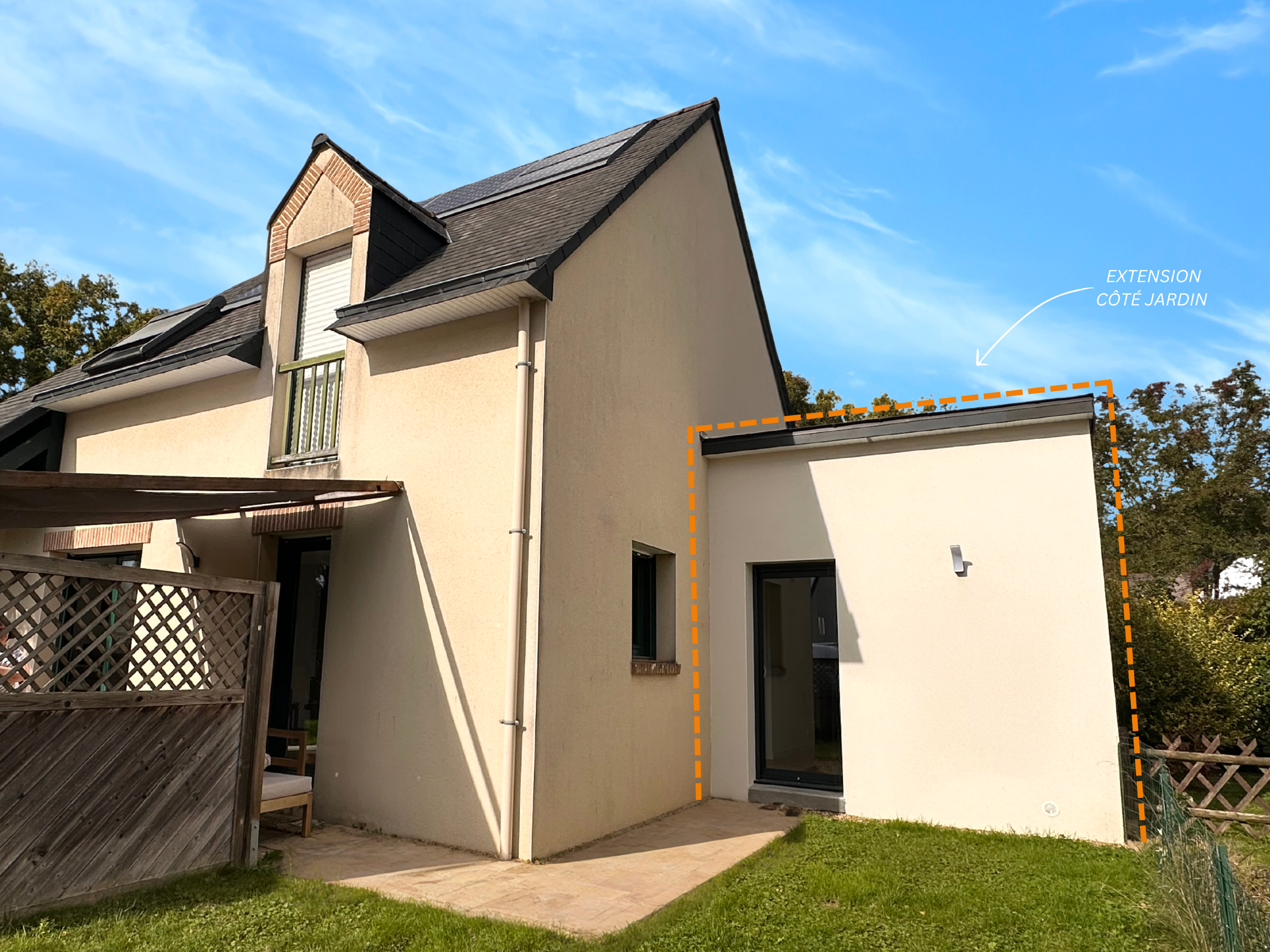 À Acigné, nous avons conçu une extension de 33 m², pensée pour créer un espace détente modulable au rez-de-chaussée et un bureau fonctionnel. L’objectif : apporter confort et praticité tout en prévoyant une évolution future vers une suite parentale, parfaitement intégrée à l’architecture existante de la maison.