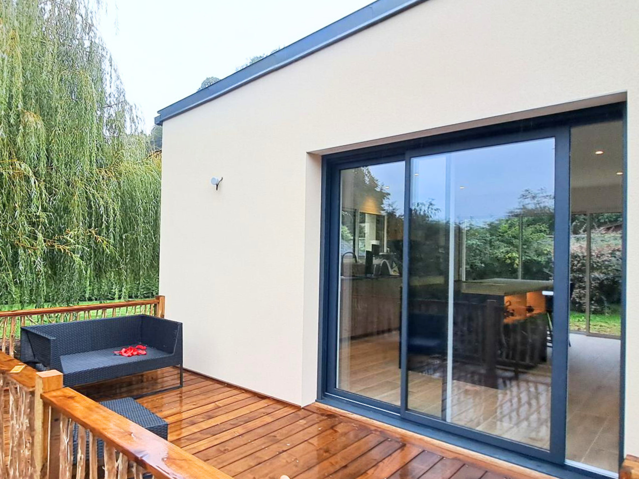 – Une toiture monopente en zinc quartz à joint debout, apportant une note contemporaine et raffinée