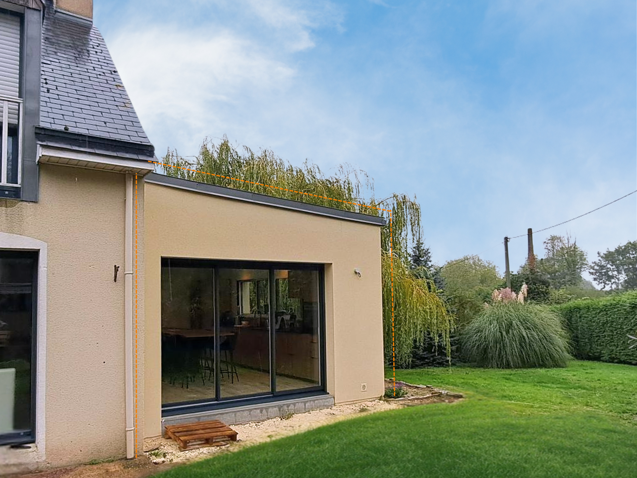 À La Gouesnière, nous avons récemment livré une extension de 25 m² conçue pour accueillir une cuisine spacieuse, lumineuse et résolument contemporaine. L’objectif : agrandir la maison tout en lui apportant une touche de modernité parfaitement intégrée à son architecture existante.