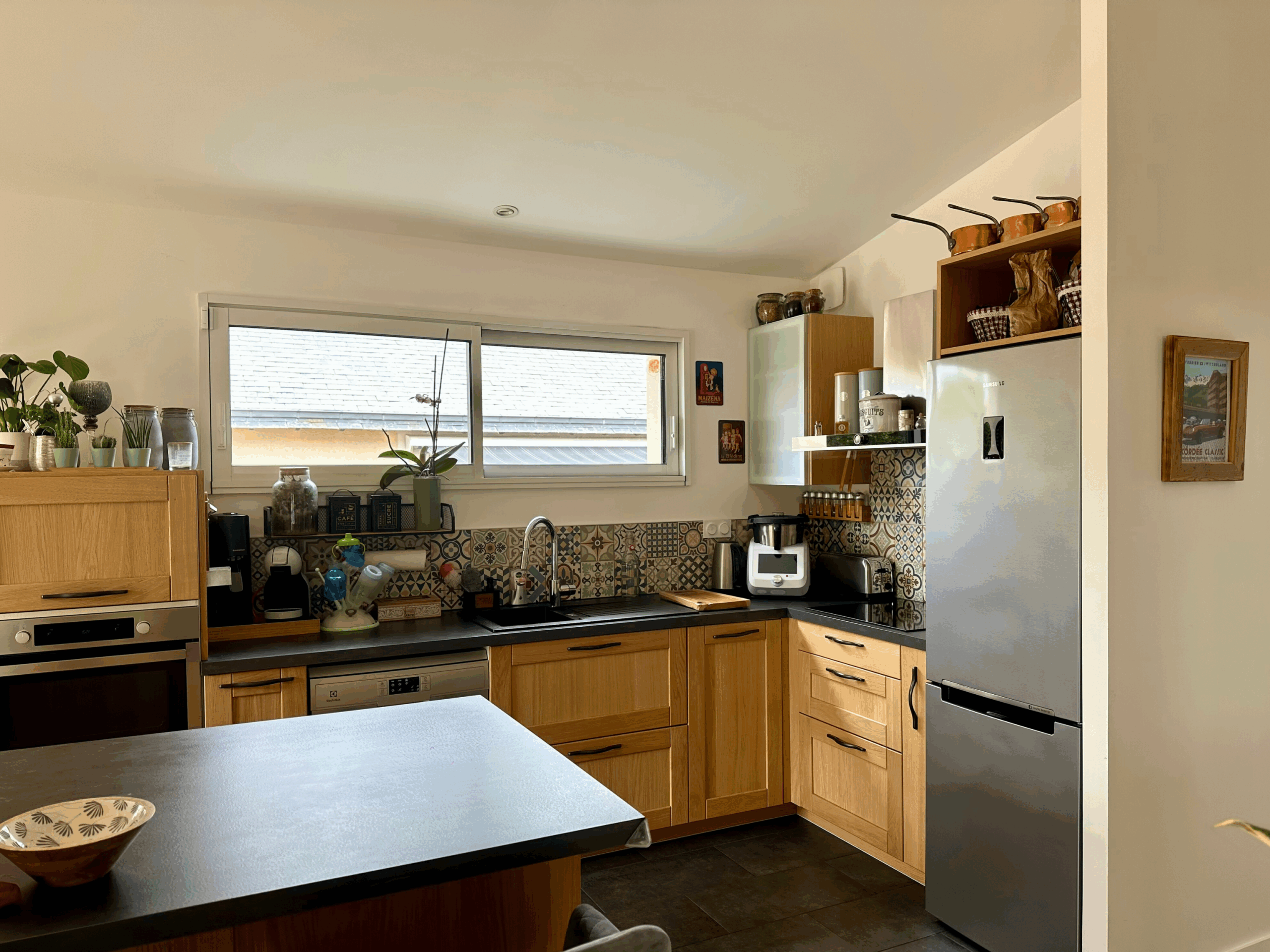 De plain-pied, cette extension permet de créer une nouvelle entrée, avec placard et wc, un nouvel espace cuisine ouvert sur un spacieux salon/séjour.